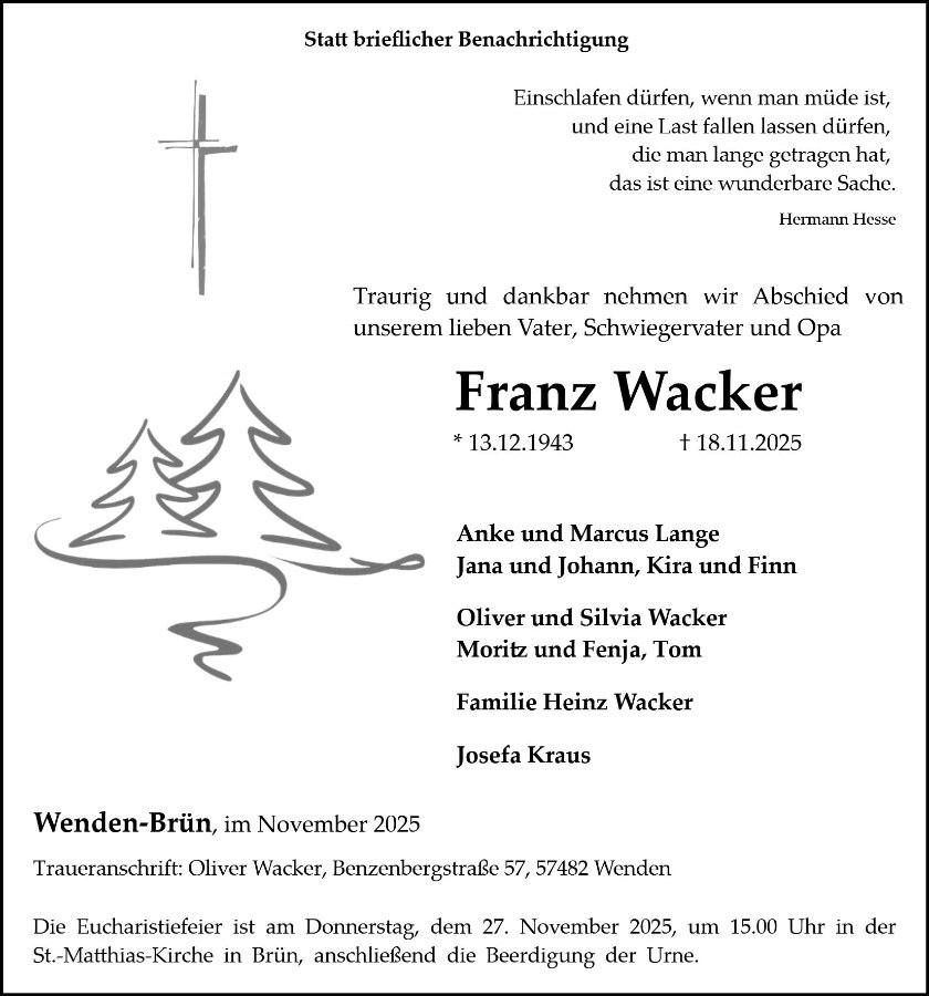 wir wünschen Ihnen für die kommende Zeit viel Kraft und dass es Ihnen gelingt, dankbar auf die positiven Erinnerungen zurückzublicken. Diese Gedenkseite möge Ihnen dabei helfen, Ihre Trauer zu teilen und das Andenken gemeinsam wachzuhalten.